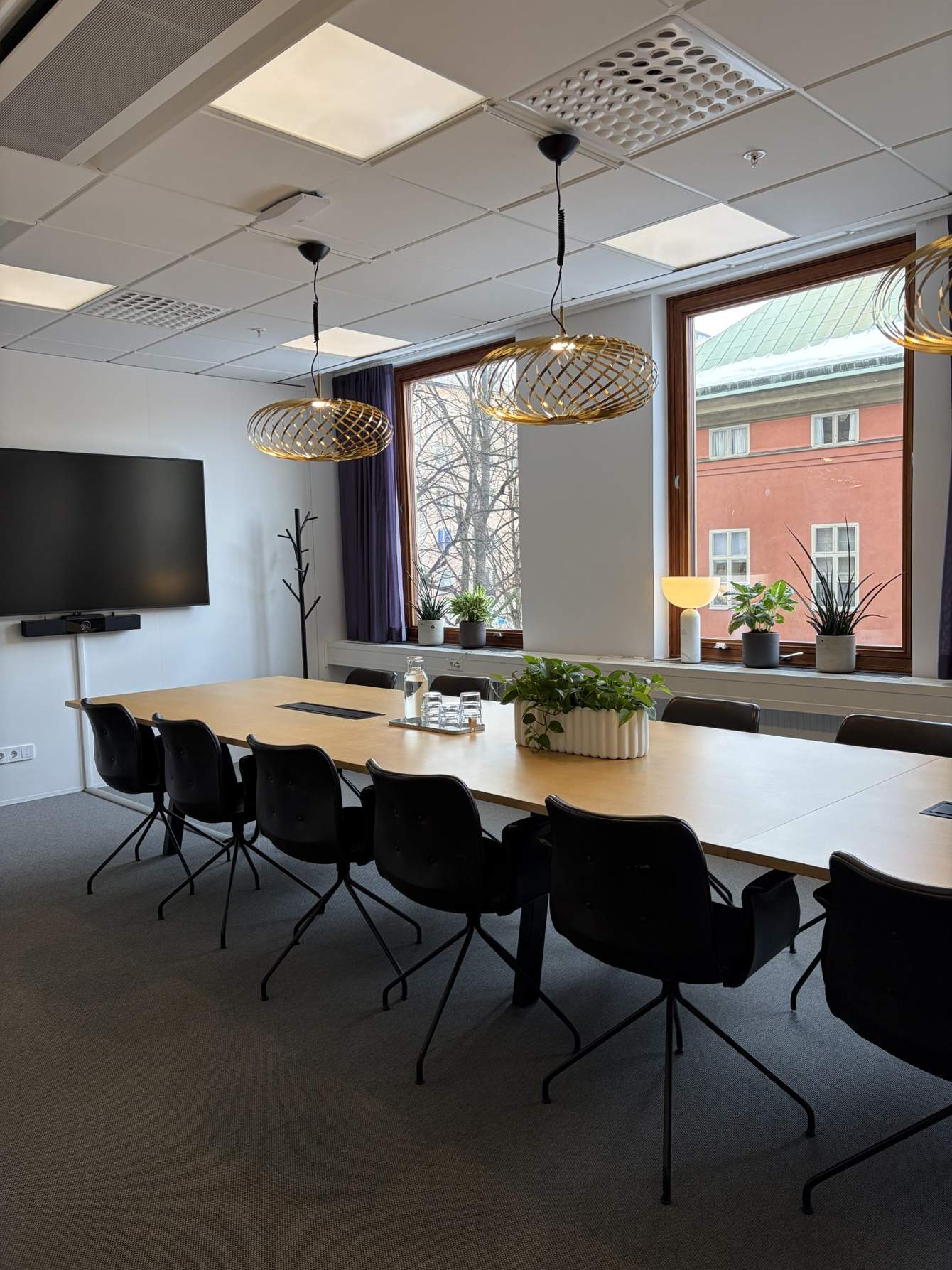 Ett ljust och trivsamt mötesrum med plats för upp till 12 personer. Stora fönster ger gott om dagsljus och en inbjudande känsla. Rummet är utrustat med skärm för presentationer och whiteboard för idéarbete. Perfekt för möten, workshops och planering.