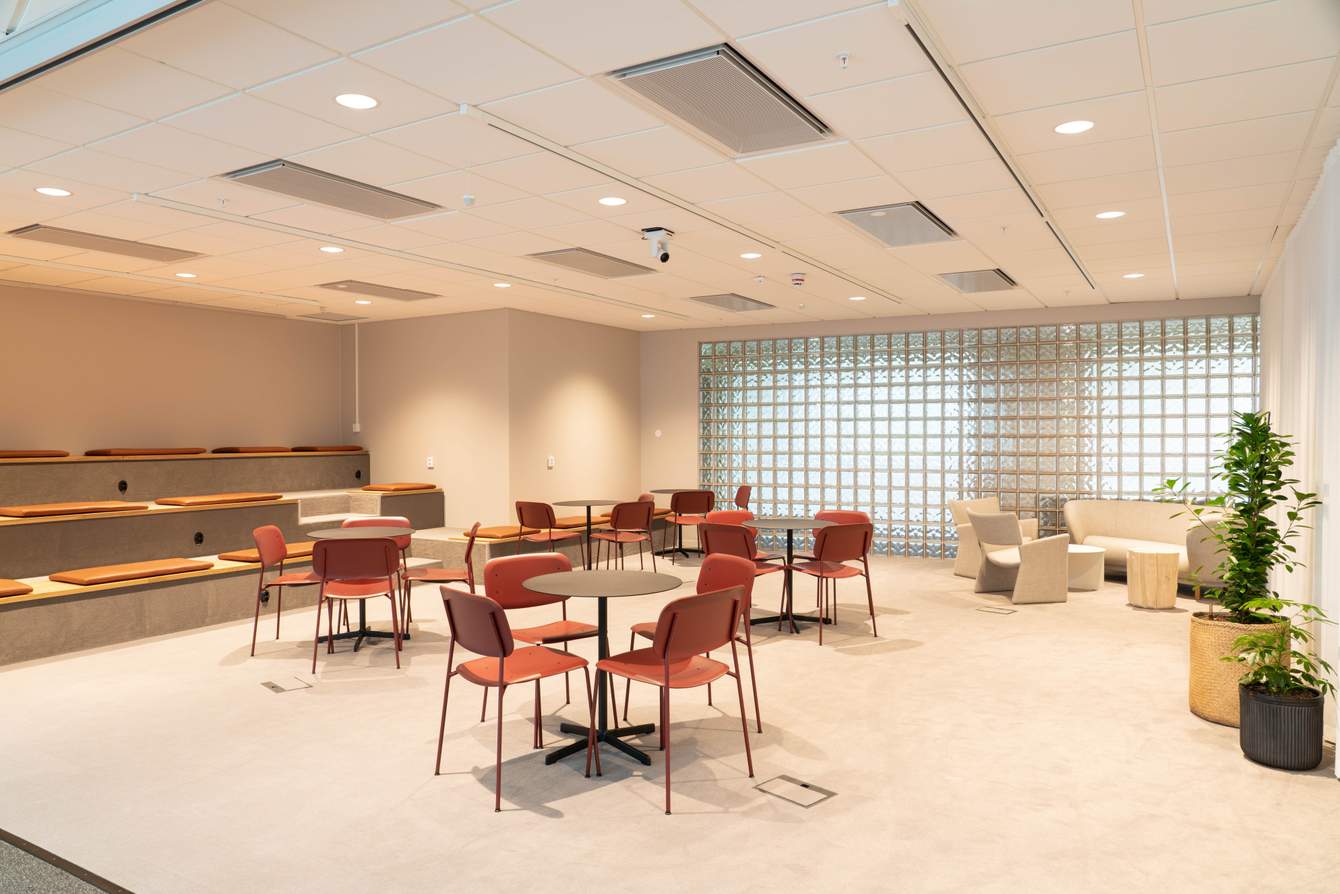 Lindholmens eventarena som är ett av våra större, ljusa och luftiga mötesrum med glasdörrar som passar för möten upp till 55 personer. Har en gradäng längst bak i lokalen och går att möblera i vilken sittning som önskas. Inkluderar TV & webkamera, whiteboard samt block & penna.