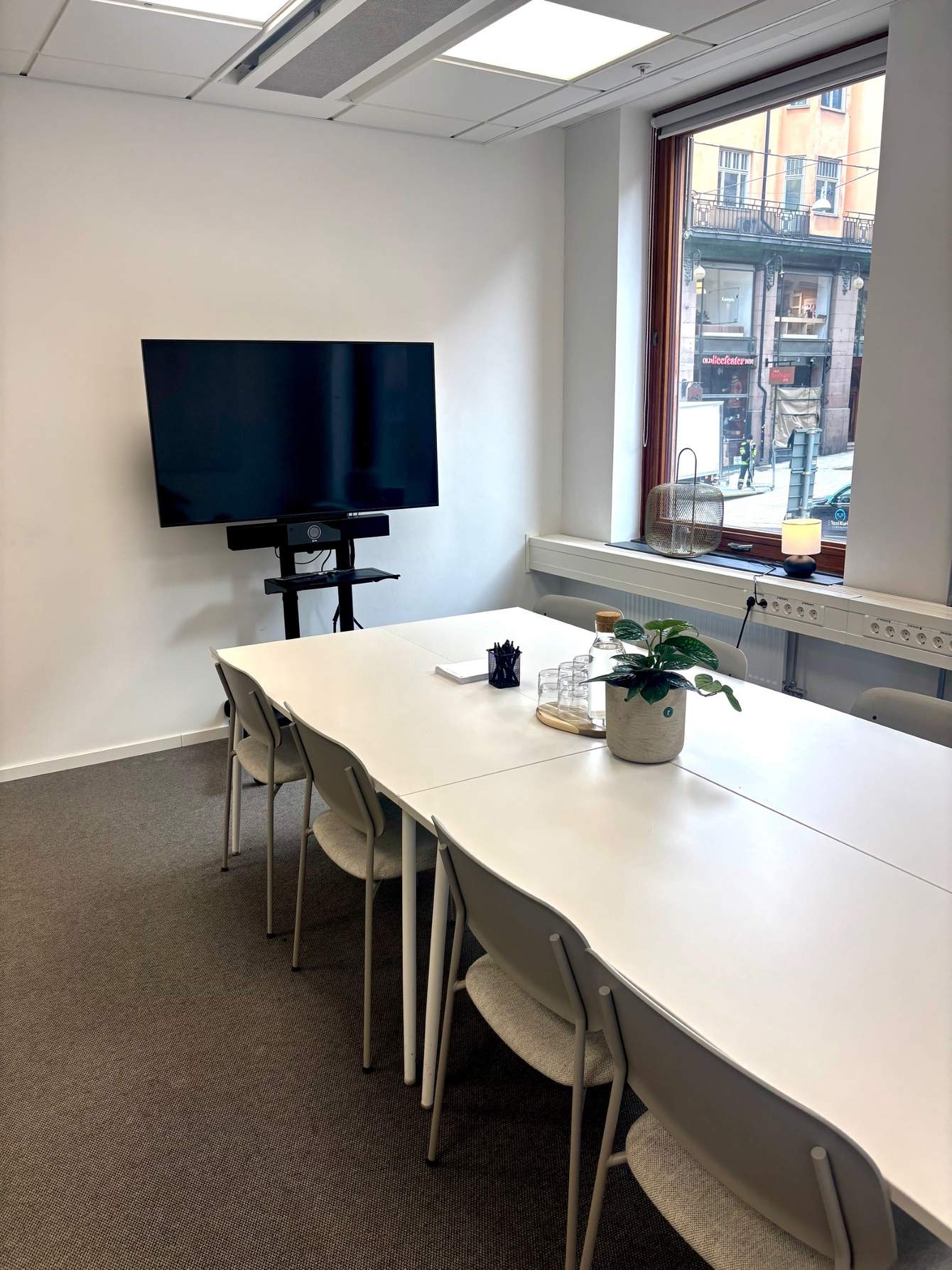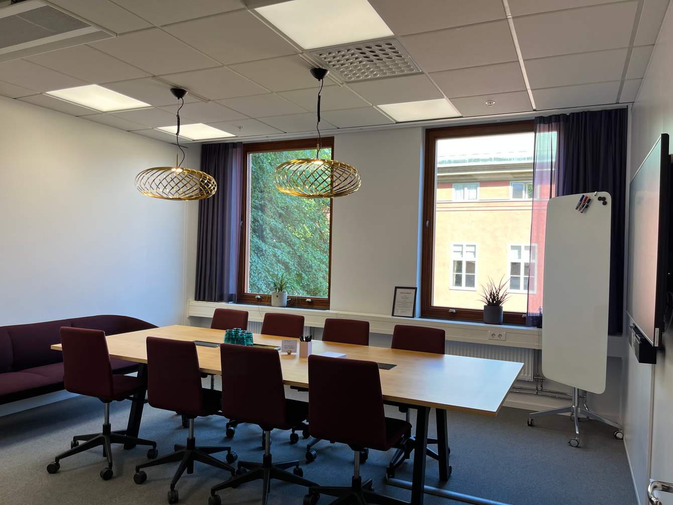 Ett ljust och härligt mötesrum med stort fönster in mot vår mysiga innergård.