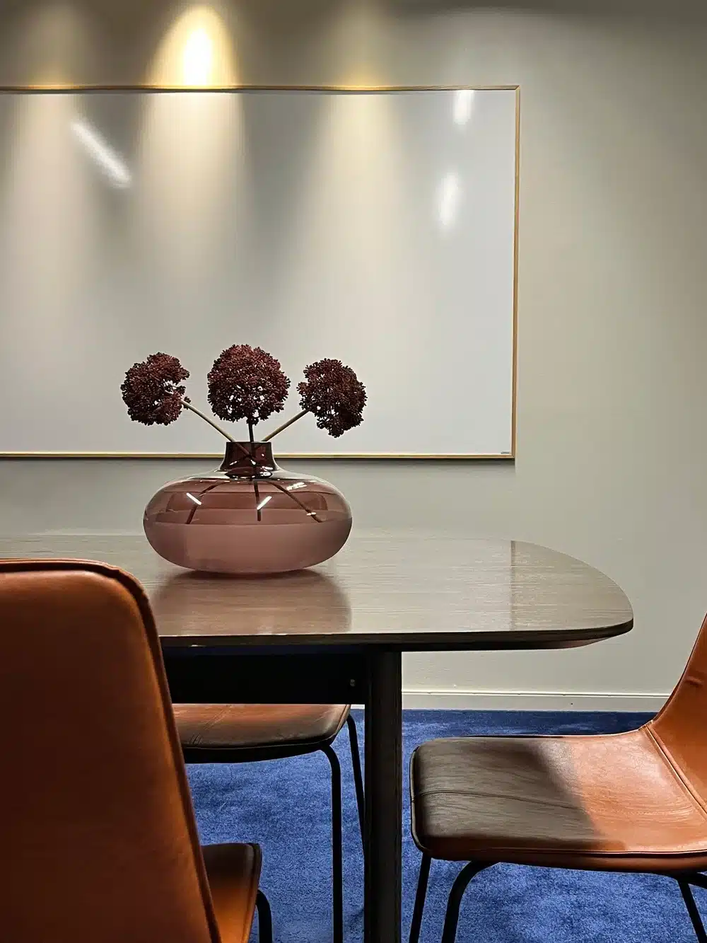 Ett rymligt mötesrum utrustat med TV, whiteboard och webcam.