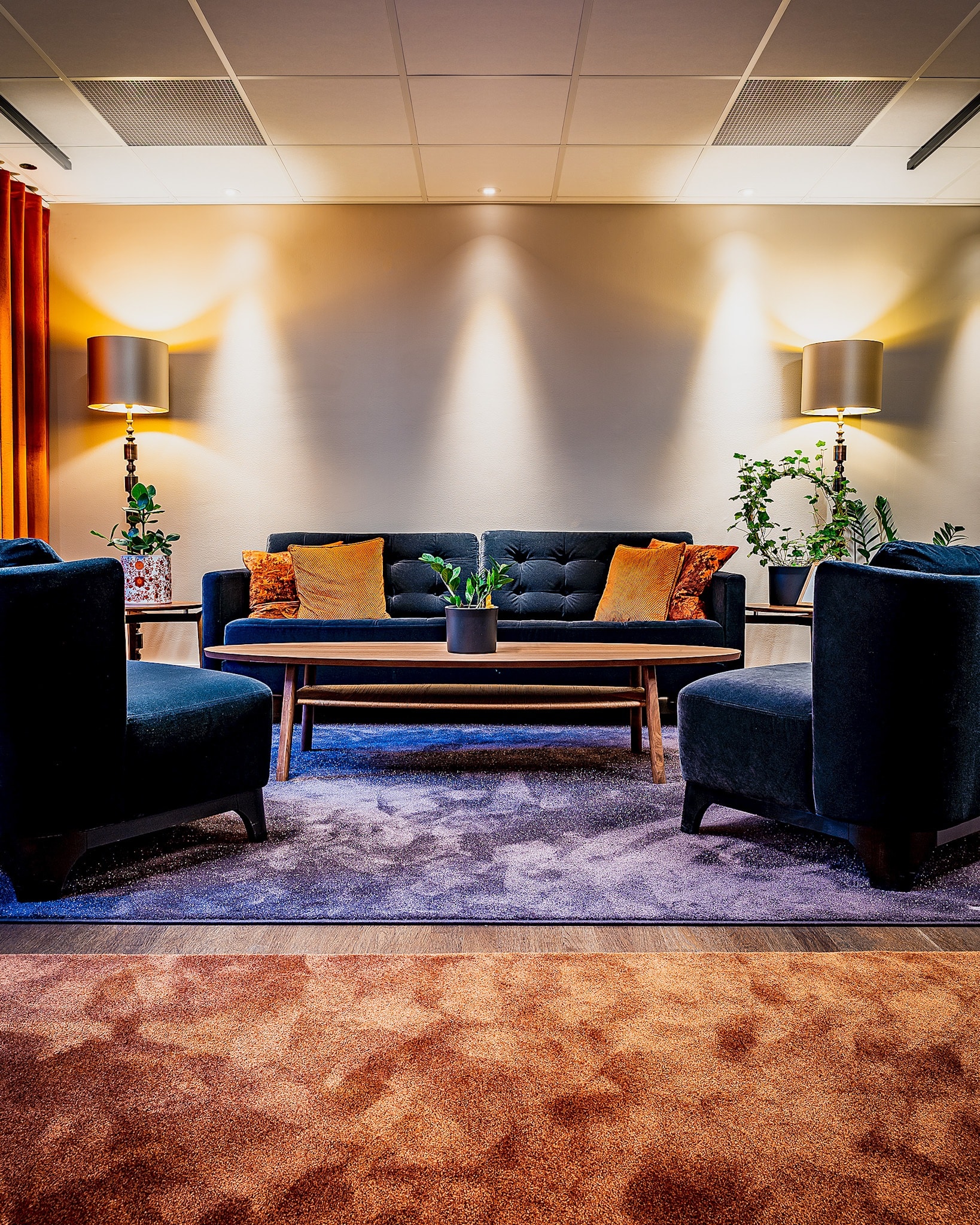Vår lounge blir ditt kontor för dagen. Jobba från en av våra sköna soffor eller fäll upp laptopen vid ett arbetsbord. För möten finns smarta telefonbås.