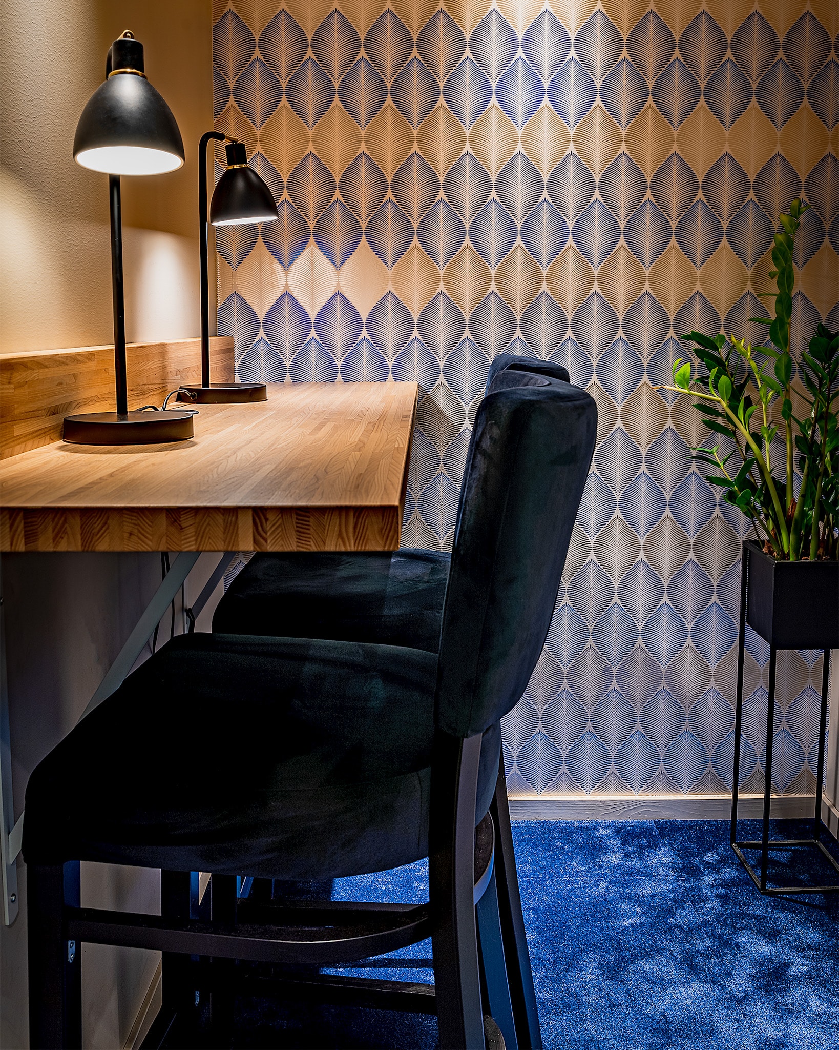 En dedikerad arbetsplats som är din egen. Komplett med höj- och sänkbart skrivbord och ergonomisk stol. Pynta med din ljusblåa musmatta eller bilder på nära och kära. Och kom och gå som du vill – vi står kvar. Eller ännu viktigare: Ditt skrivbord står kvar.