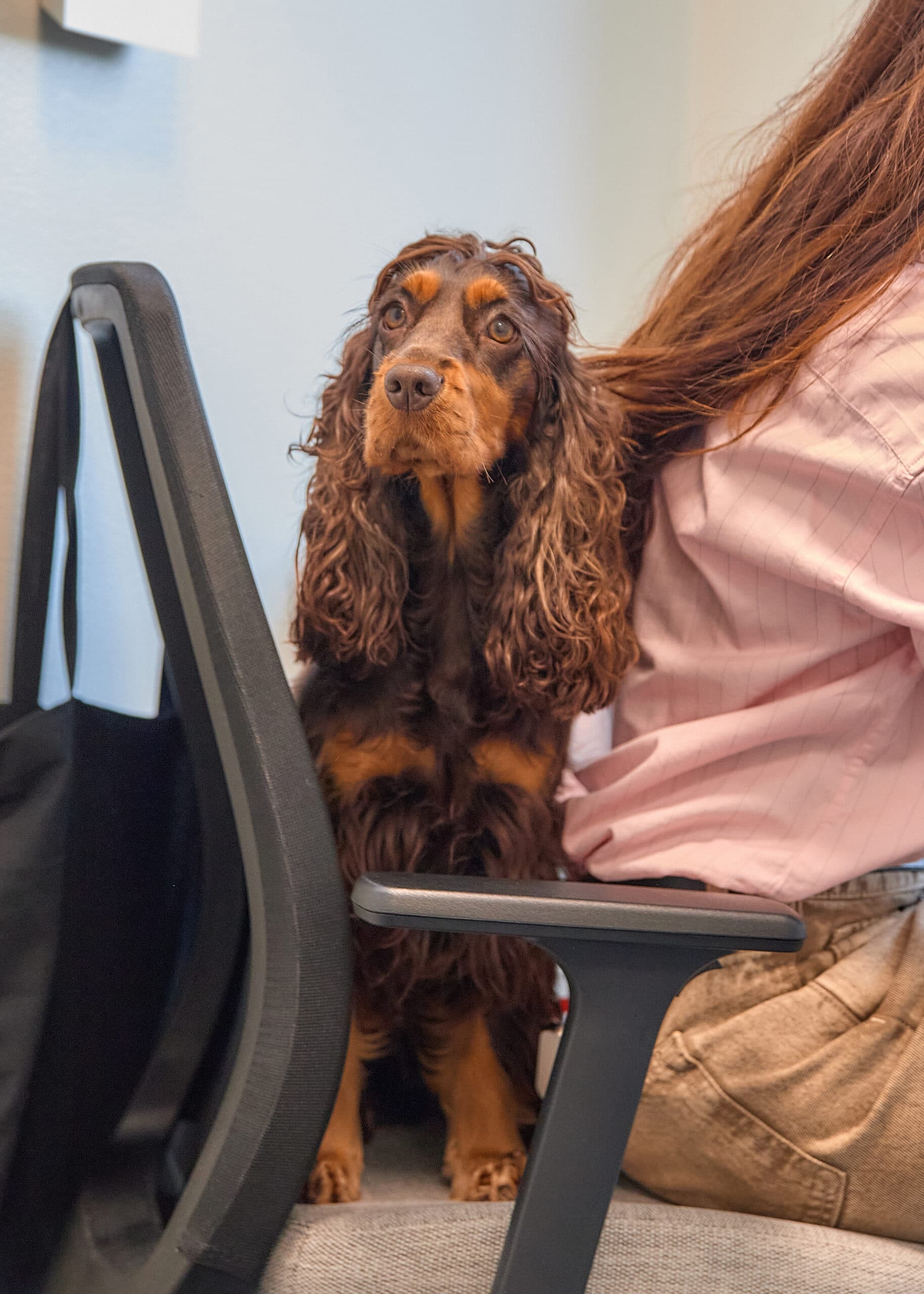 En dedikerad arbetsplats som är din egen. Komplett med höj- och sänkbart skrivbord och ergonomisk stol. Pynta med din ljusblåa musmatta eller bilder på nära och kära. Och kom och gå som du vill – vi står kvar. Eller ännu viktigare: Ditt skrivbord står kvar.