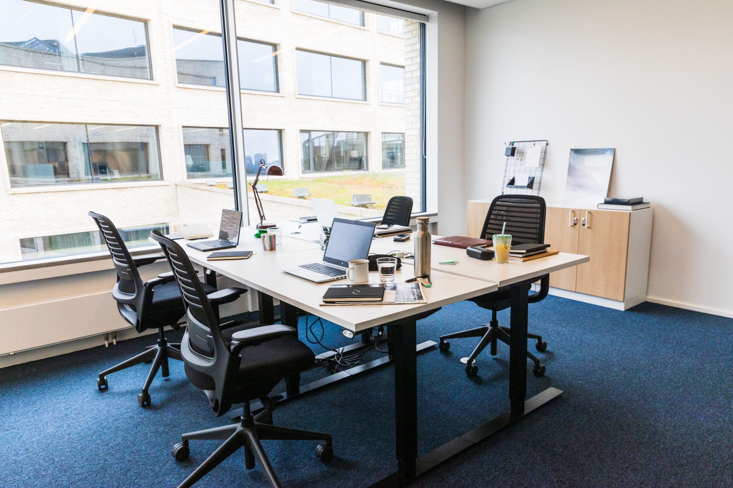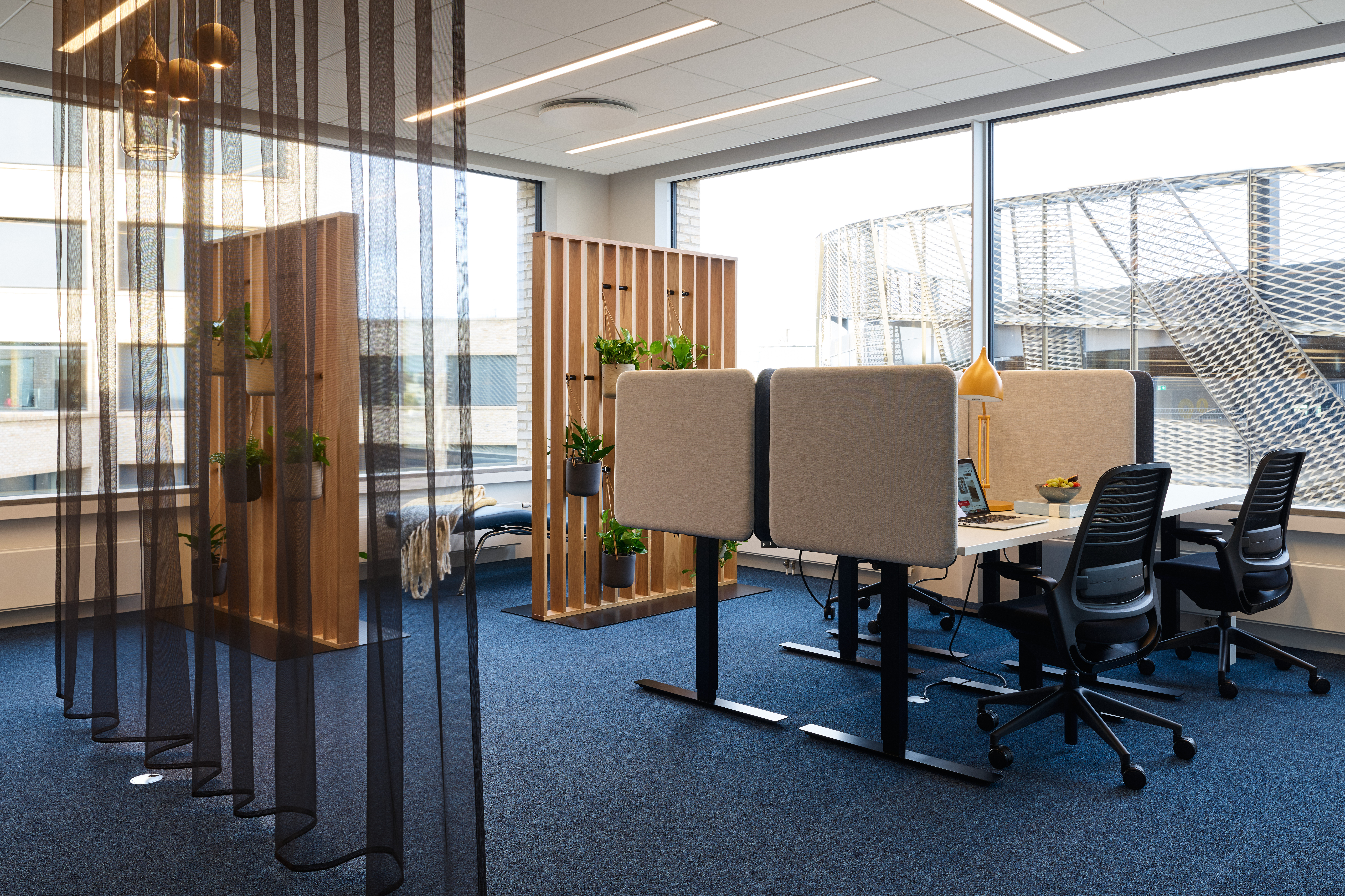 En dedikerad arbetsplats som är din egen. Komplett med höj- och sänkbart skrivbord och ergonomisk stol. Pynta med din ljusblåa musmatta eller bilder på nära och kära. Och kom och gå som du vill – vi står kvar. Eller ännu viktigare: Ditt skrivbord står kvar.